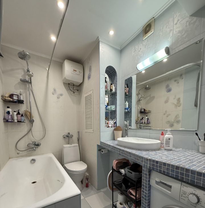 В квартире сделан качественный евроремонт. Теплые полы в прихожей и на кухне. Просторные и светлые комнаты обставлены мебелью, что создаёт атмосферу уюта и комфорта. На кухне есть вся необходимая бытовая техника: холодильник, посудомоечная машина, а также кондиционер и телевизор. Окна выходят как на улицу, так и во двор, поэтому в квартире будет много света.