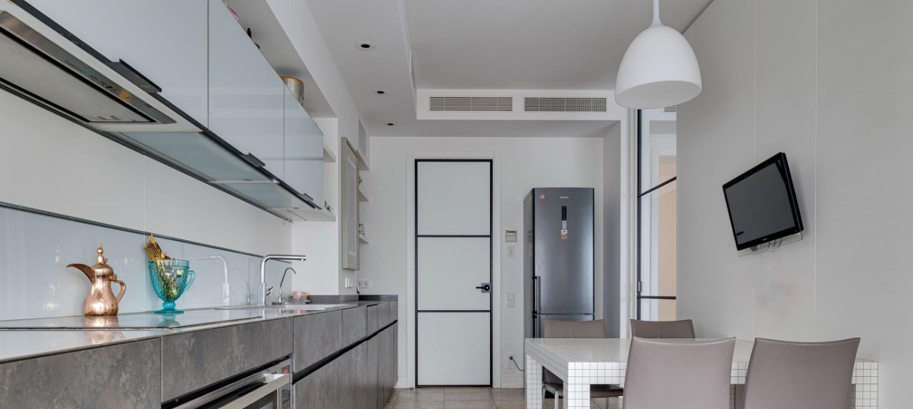 Квартира полностью оборудована функциональной и современной техникой, мебелью и декором для комфортного проживания.
