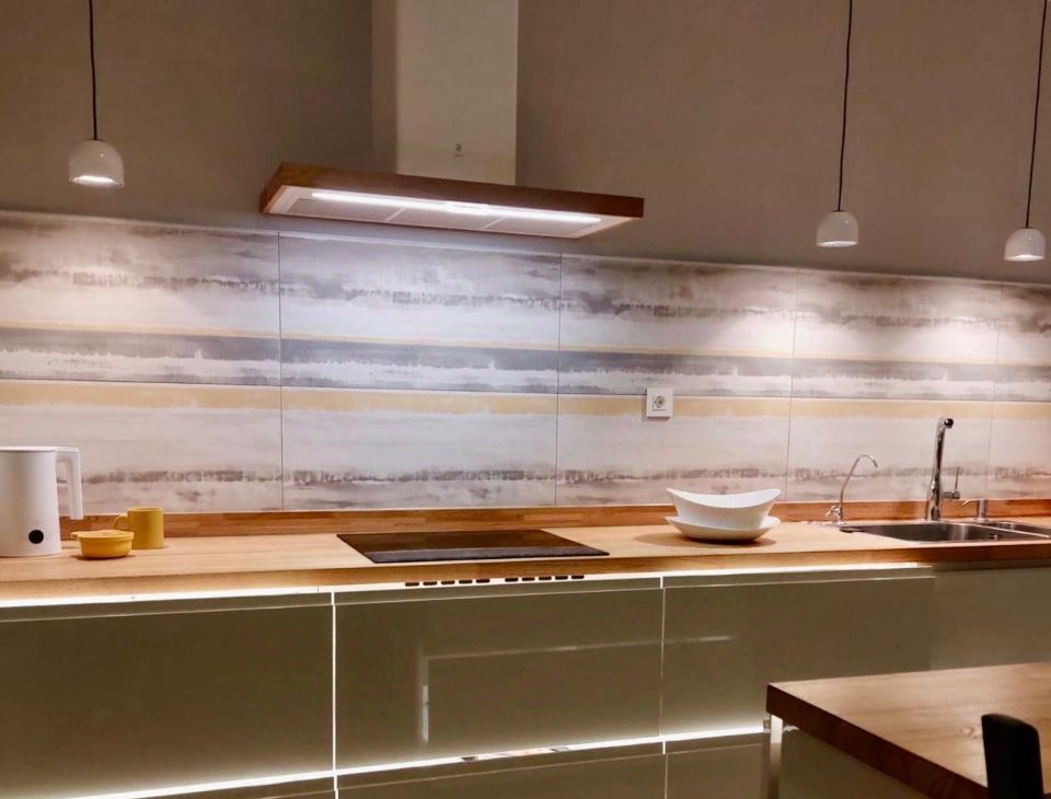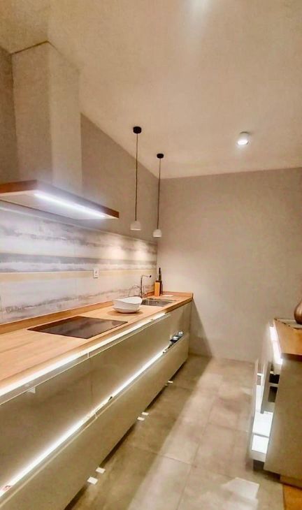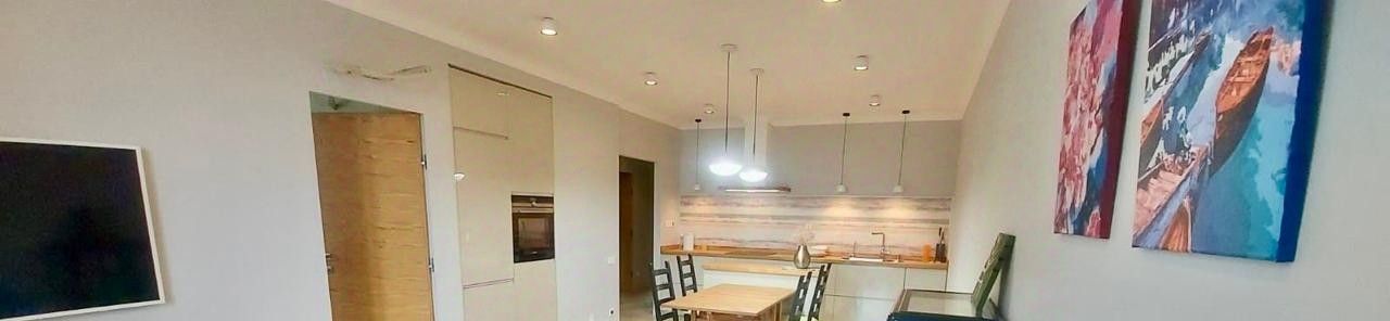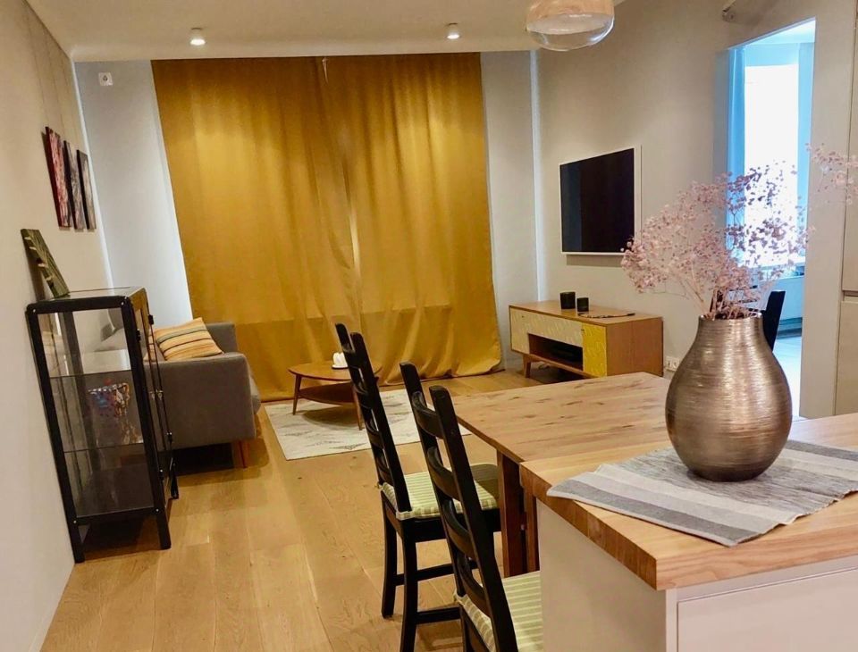 В квартире выполнен дизайнерский ремонт в эко-скандинавском стиле с использованием премиальных натуральных материалов. Светлая кухня с островом и деревянной столешницей изготовлена на заказ и полностью оснащена встроенной техникой, включая технику Siemens и Liebherr. В отделке использованы сантехника Villeroy & Boch и Laufen, натуральный паркет и тёплые полы.