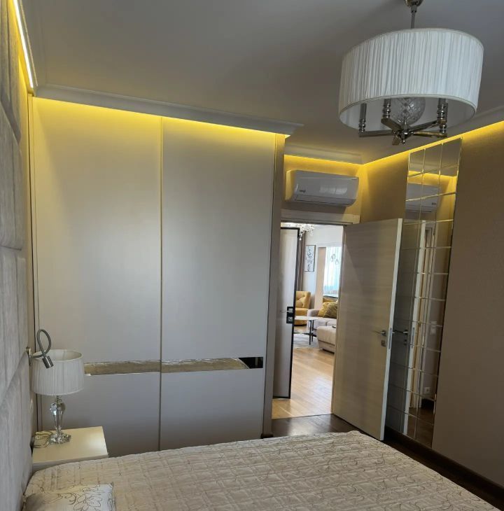 В каждой комнате, кухне, холле, несколько сценариев освещения, ремонт с применением дорогостоящих, качественных материалов, в зонах с плиткой-полы с подогревом. Кондиционеры, телевизоры, диван с пультом управления. Есть постирочное, отдельное помещение с тех. и гладильной доской.