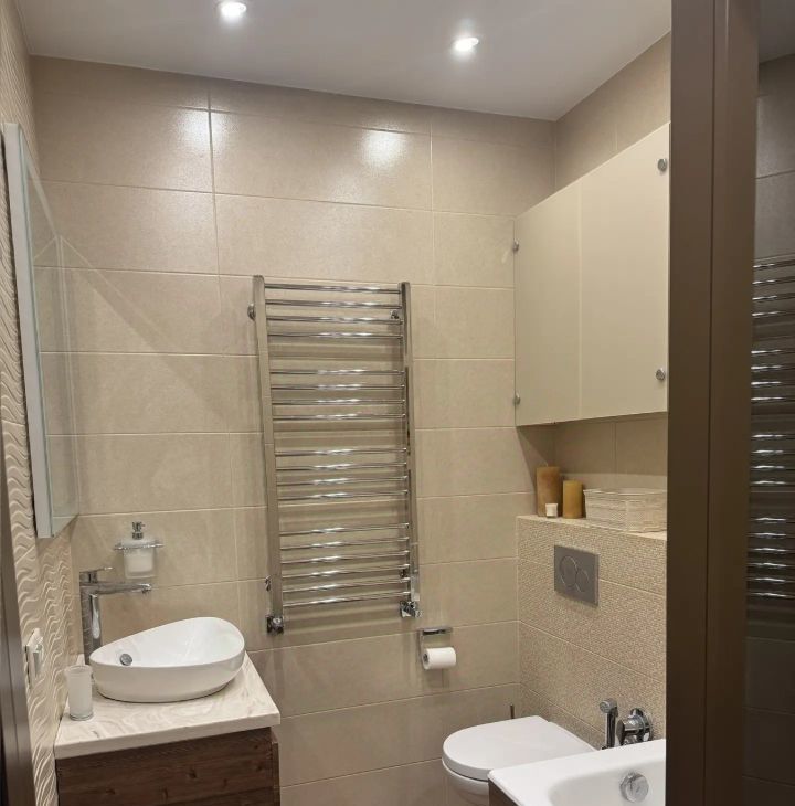 2 сан. узла, один с душ. кабиной, второй рядом со спальней, с ванной.