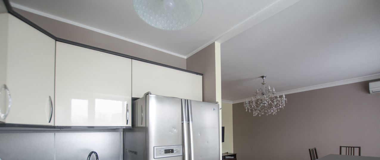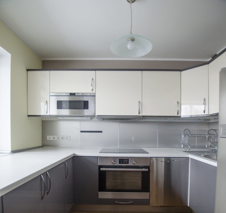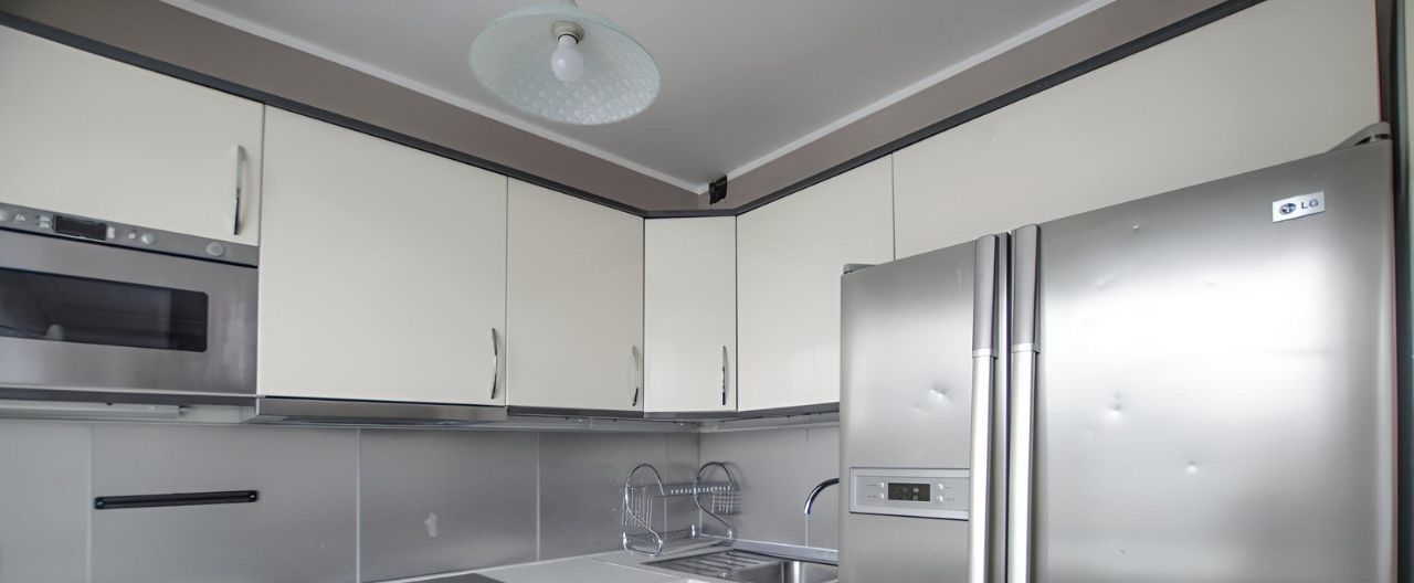 В просторной кухне, совмещенной с гостиной - функциональное рабочее место, оснащенное современной бытовой техникой, включая духовую печь, варочную панель и посудомоечную машину под единой столешницей, встроенную СВЧ, вытяжку, двухкамерный двухдверный холодильник. Большое рабочее пространство для приготовления с барной стойкой. ЖК телевизор. Отдельная обеденная зона. Выход на огромную застекленную лоджию.