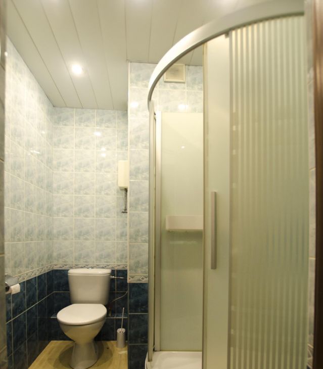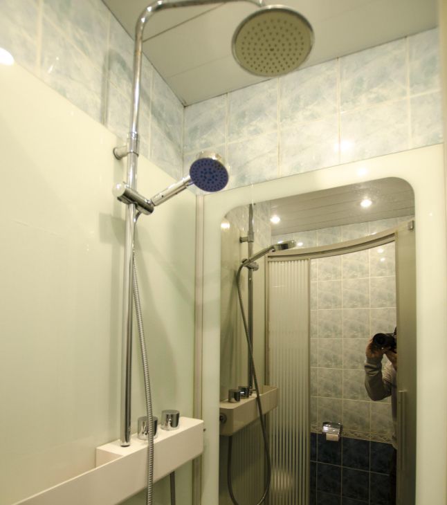 - один с душевой кабиной и проточным нагревателем