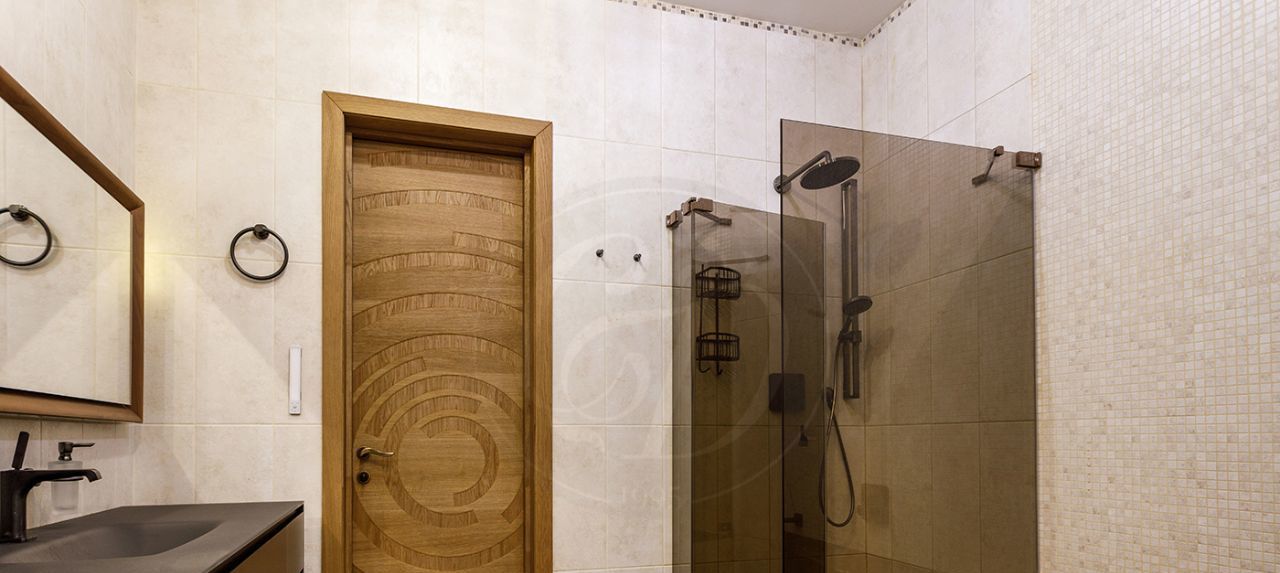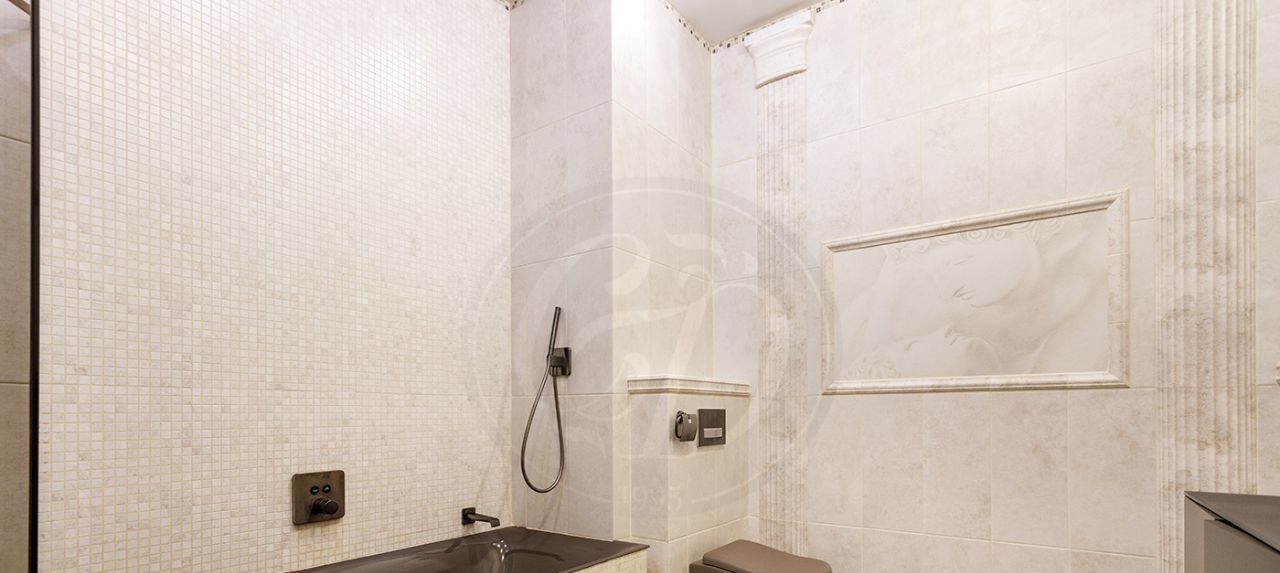 Трёхкомнатная квартира с дизайнерским ремонтом в ЖК"Парк Палас". Пространство поделено на зону прихожей с гостевым сан.узлом, просторную гостиную с выходом на видовую лоджию и изолированную кухню. Две спальни, каждая со своей ванной комнатой. Окна выходят в тихий двор. Высота потолков 3.3 м. Есть машиноместо в подземном паркинге.