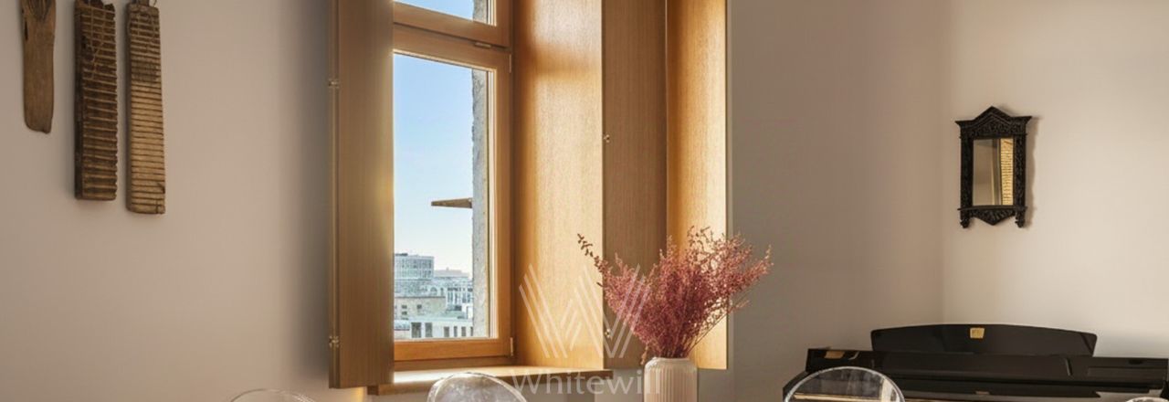 Функциональная планировка включает гостиную, кухню закрытого плана, спальню, кабинет, гардеробную, прихожую, санузел с ванной и душевой кабиной, постирочную. Это пространство не про излишнюю роскошь. Оно про вкус, атмосферу и внутреннее ощущение дома в самом сердце Москвы.