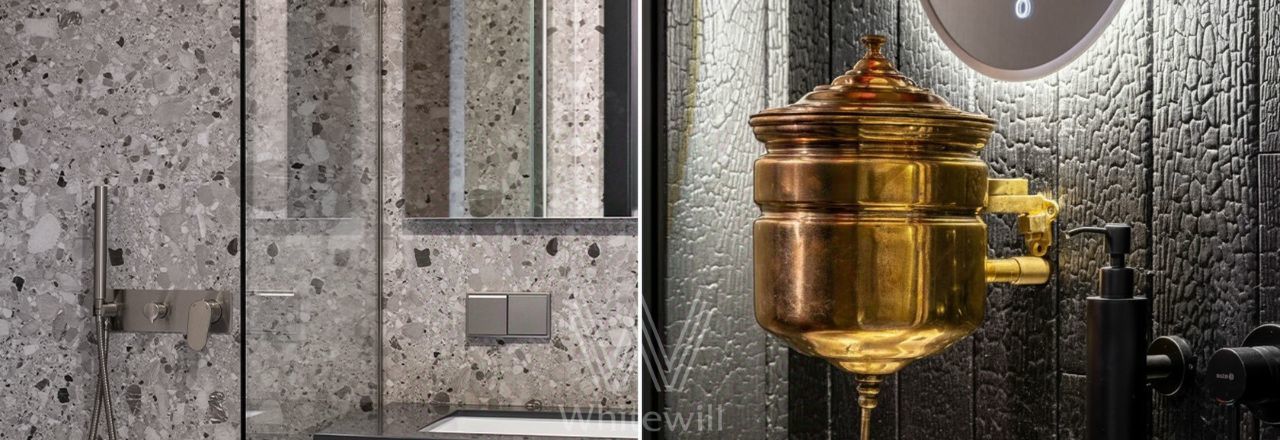 Просторные комнаты и потолки 3,5 метра создают ощущение свободы. Можно работать в кабинете, слушать музыку или устраивать званые ужины за обеденным столом, где легко собирается большая компания. Вечером пространство меняется: приглушённый свет, аромат древесных ноток, лёгкое тепло от изразцовой печи, выполненной в технике "перовская мурава".