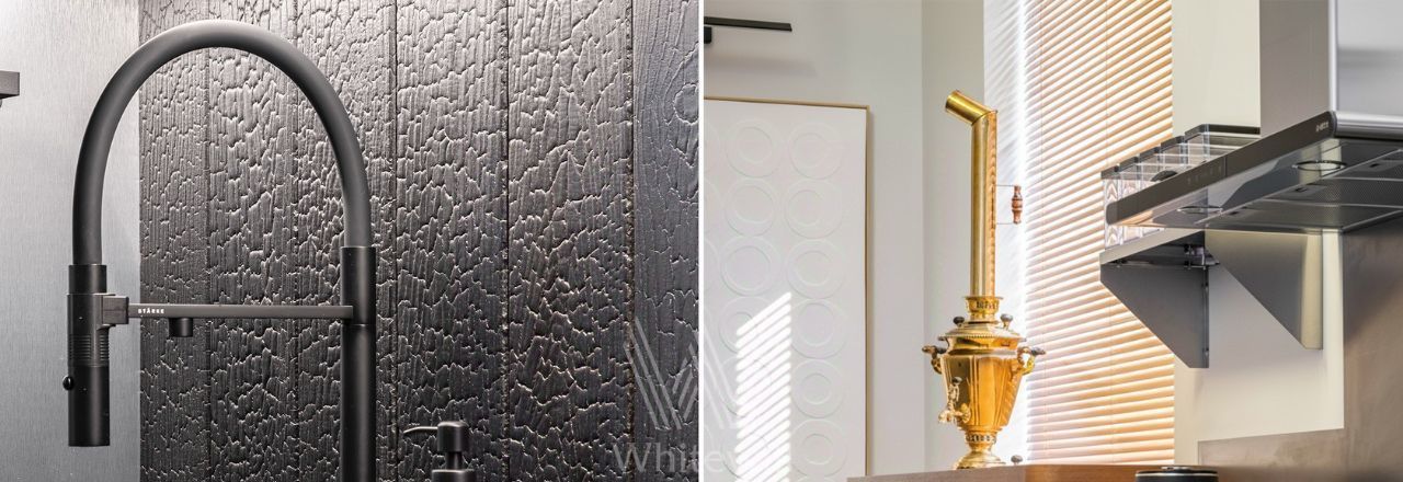 В интерьере сочетаются элементы из дерева и металла, которые добавляют комнатам глубины и надёжности. Здесь всё создано с вниманием к деталям: от адаптивного освещения до мебели, выполненной на заказ. Встроена вся необходимая техника: духовой шкаф и микроволновая печь Bosch, варочная панель AEG, стиральная и сушильная машины Haier, а цифровое пианино Yamaha Clavinova в углу гостиной позволяет стать ближе к искусству в повседневной жизни. С помощью системы "умный дом" управляйте освещением, температурой и доступом в квартиру.