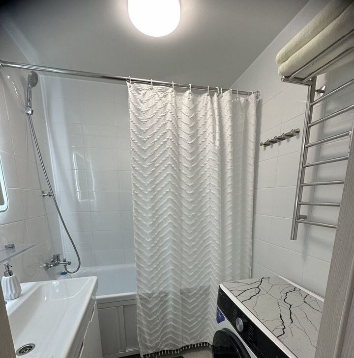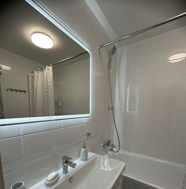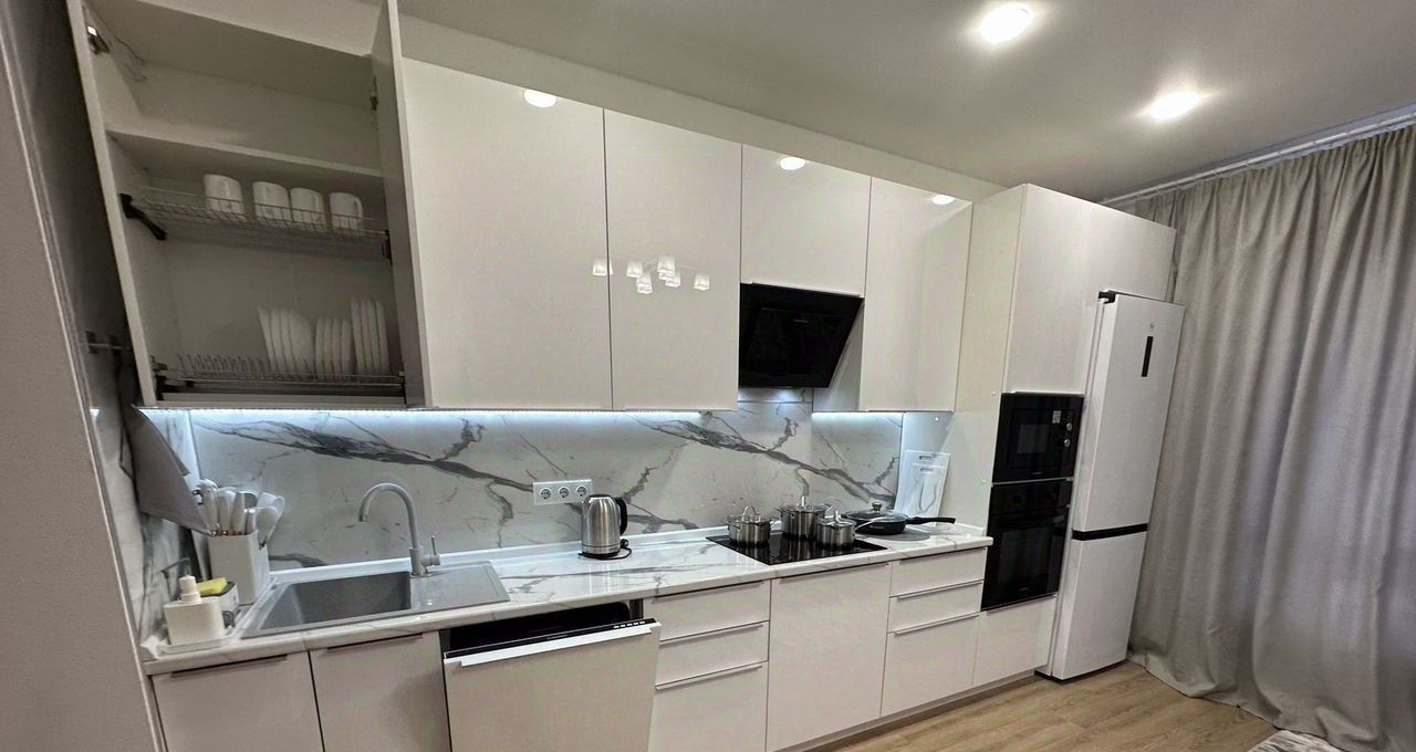 В квaртире сделaн евpоремонт. Здесь есть всё необходимое для жизни: кондиционер - з шт, холодильник, телевизор LG 55, посудомоечная и стиральная машина с функцией сушки, пылесос, гладильная доска, посуда, постельное белье. В комнатах и на кухне стоит современная мебель. Санузел раздельный, в ванной комнате установлена ванна.