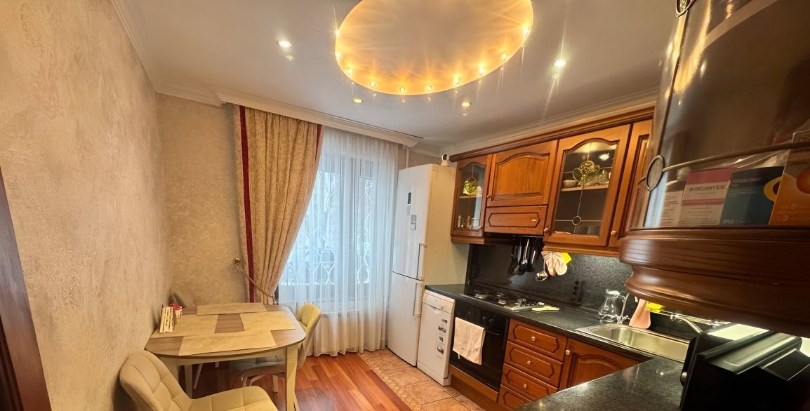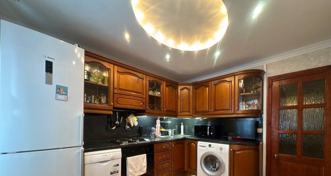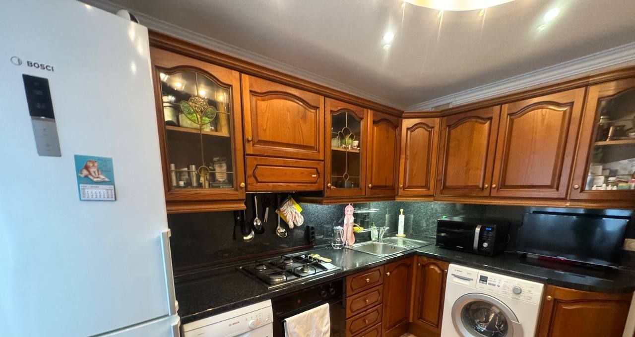 Большая кухня - 9,2 кв.м оборудована кухонным гарнитуром с качественной бытовой техникой, всё остается новому собственнику. Можно заехать и жить.