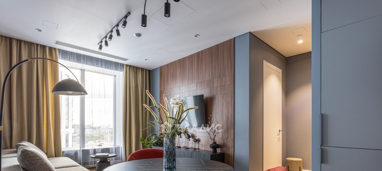 В квартире выполнен дизайнерский ремонт с использованием качественных материалов. Высота потолков 3 метра создаёт ощущение простора и свободы. Квартира полностью укомплектована мебелью, оснащена всей необходимой техникой: кондиционер, холодильник, посудомоечная, стиральная машины, телевизор, микроволновая печь, чайник, утюг, что позволяет новым жильцам сразу заселиться без дополнительных вложений. Окна выходят на улицу, а комнаты изолированы, что обеспечивает комфорт и уединение.