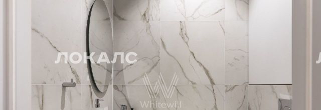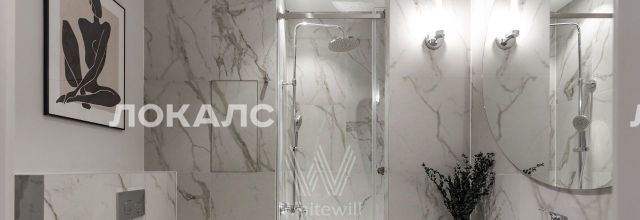 Спальня в светло-серых тонах — укромная и тихая. Закрываете плотные шторы — и мегаполис на паузе. Ванная в белом мраморе — ещё один уголок тишины, чтобы стереть заботы дня.