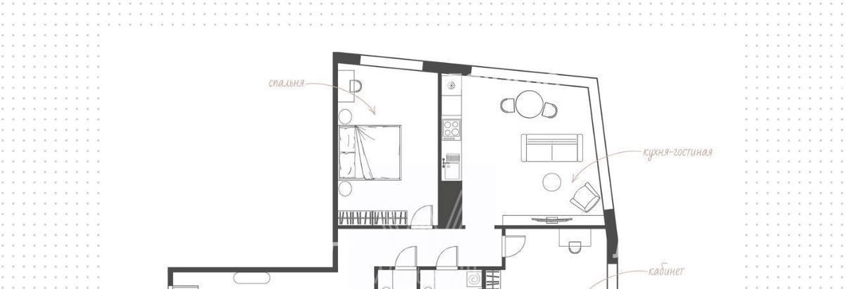 Вторая комната — идеальный домашний офис, воплощение геометрии и порядка. Жалюзи отгораживают её от внешнего мира, помогая сосредоточиться на важном.