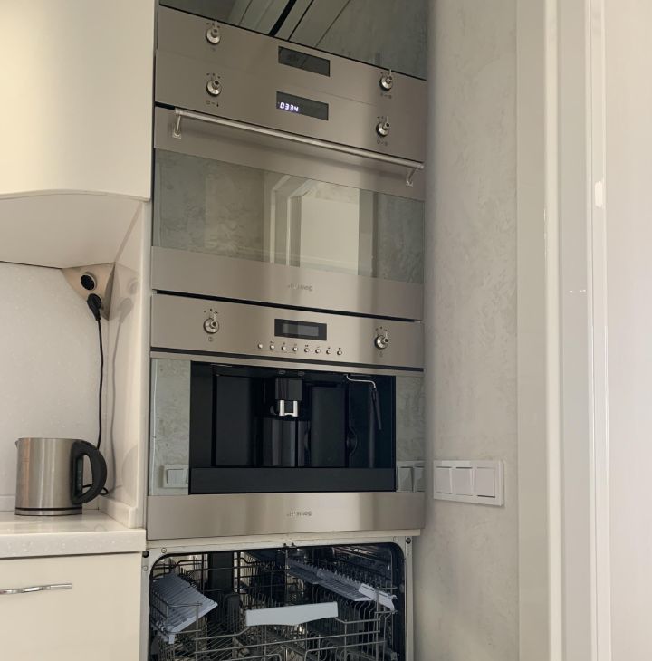 - Полностью оборудованная кухня с премиум-техникой Smeg (в т.ч. кофемашина) и холодильником No Frost, встроенный измельчитель пищевых отходов.