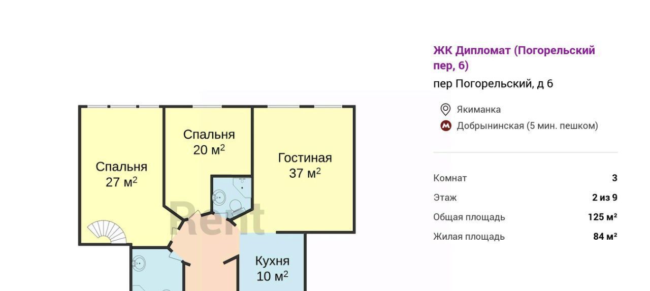 3-к кв. Москва Погорельский пер., 6 (125.0 м²)