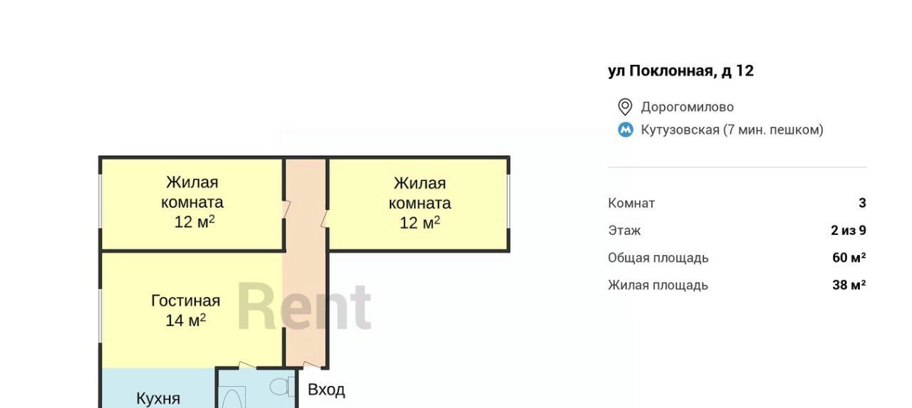 3-к кв. Москва Поклонная ул., 12 (60.0 м²)