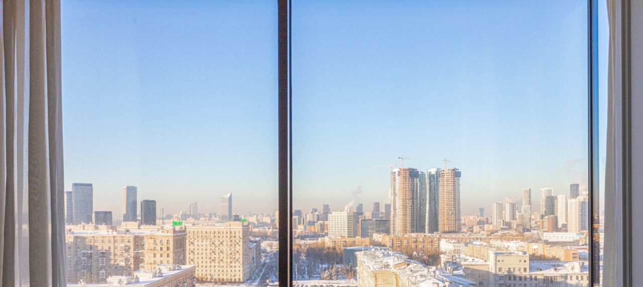 Из окон апартамента открываются виды на сквер 1812 и Москва-Сити