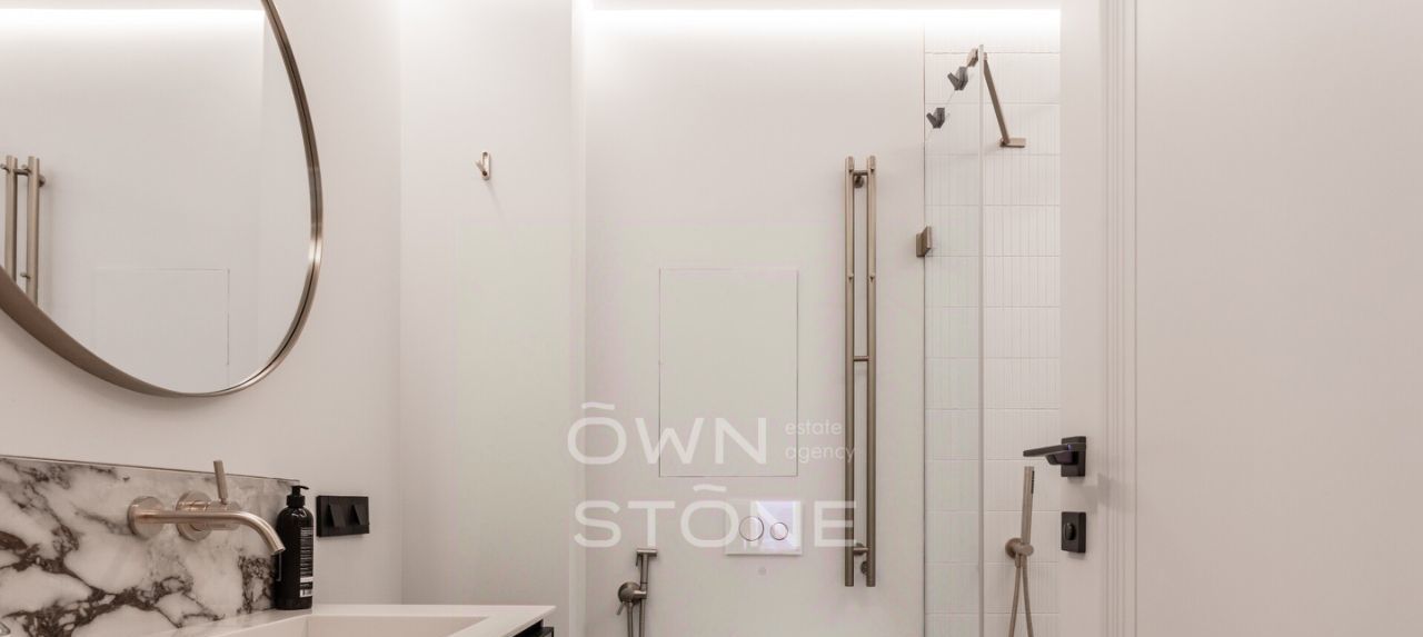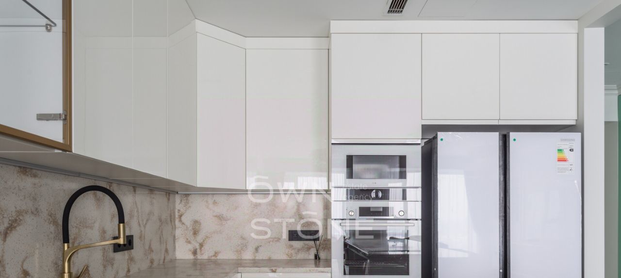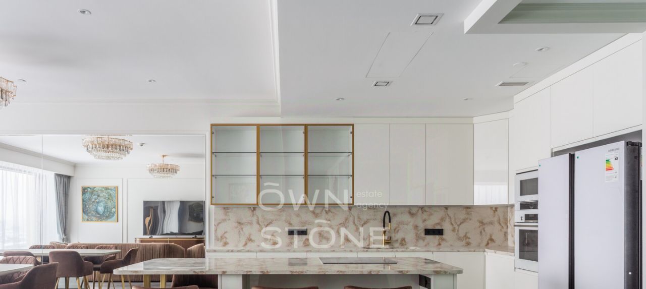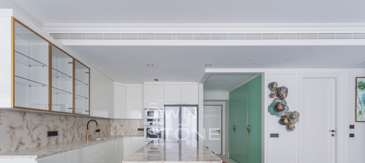 В наличии: Холодильник, варочная панель, духовой шкаф, посудомоечная машина, подогрев пола, телевизор, высокоскоростной интернет, сушильно-постирочная комната, стиральная и сушильная машины, ванна, душевая кабина, приточно-вытяжная система вентиляции и кондиционирования