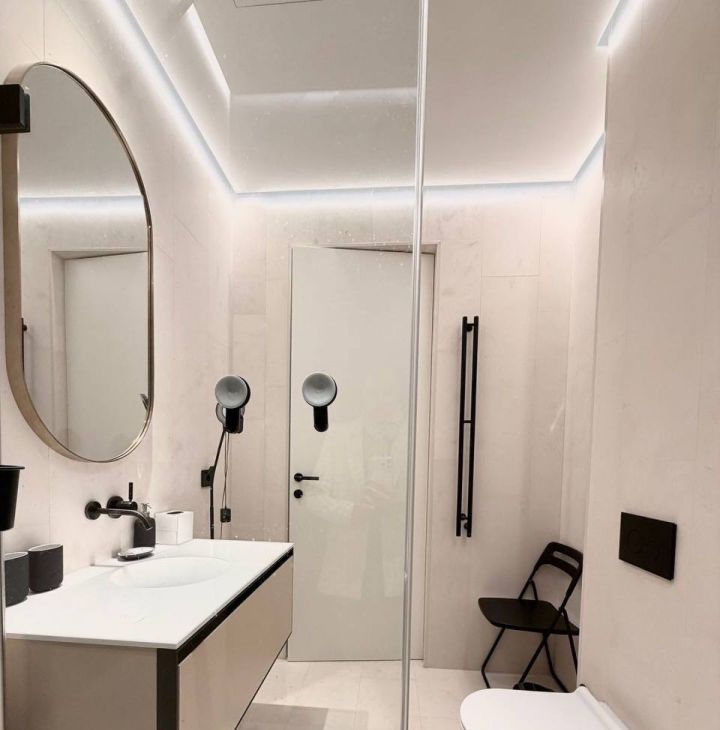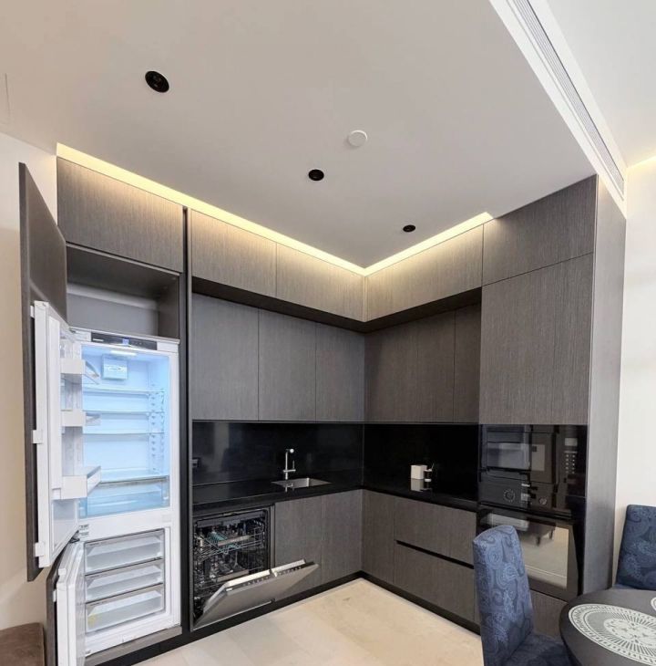 Апартамент укомплектован новой бытовой техникой: стиральная и сушильная машины, посудомоечная машина и духовой шкаф, холодильник Liebherr, ТВ 65 с голосовым управлением.