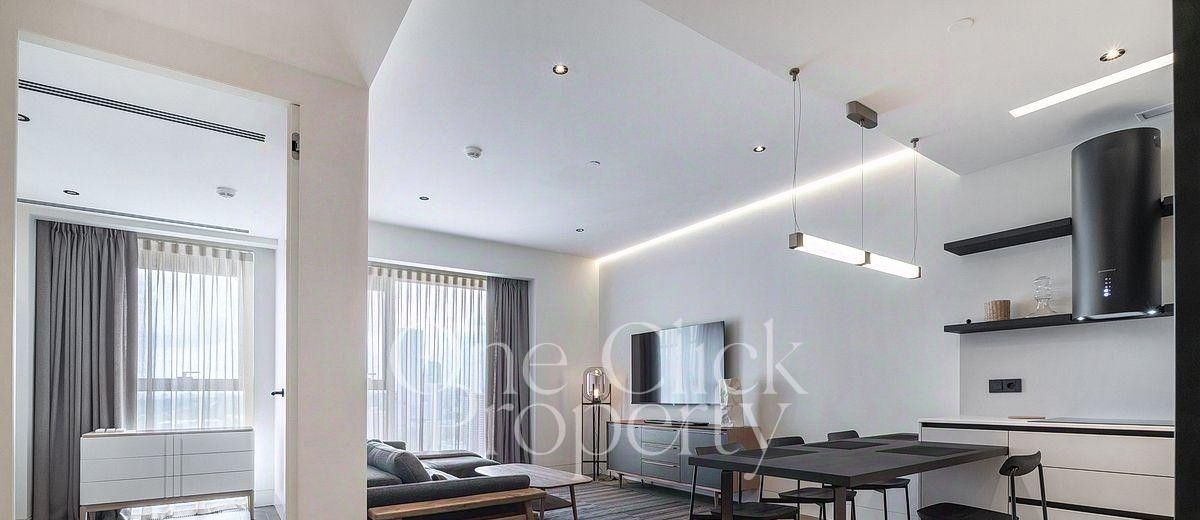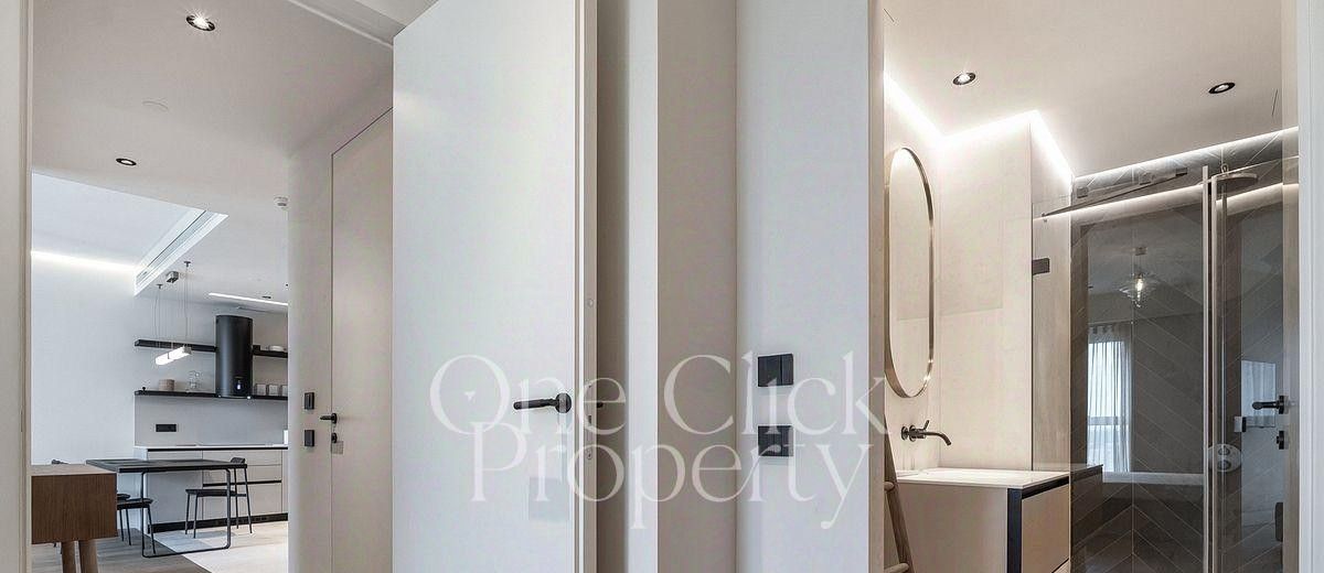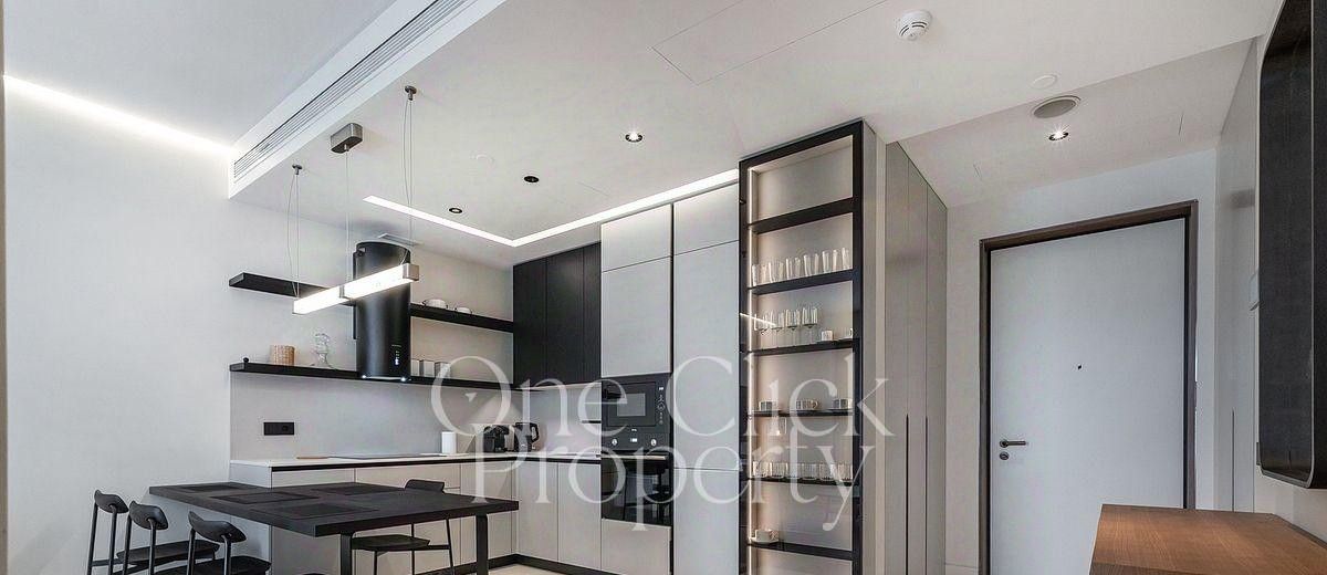 Выполнена премиальная отделка с использованием высококачественных материалов. Спланирована просторная кухня-гостиная, спальня, гостевая спальня/кабинет, ванная комната с душем, холл, а также гостевой санузел с душем. Наличие огромного количество вместительных шкафов. Всё это благоволит комфортному проживанию в апартаментах. Благодаря панорамному остеклению пространство наполнено естественным светом, открываются живописные виды на город.
