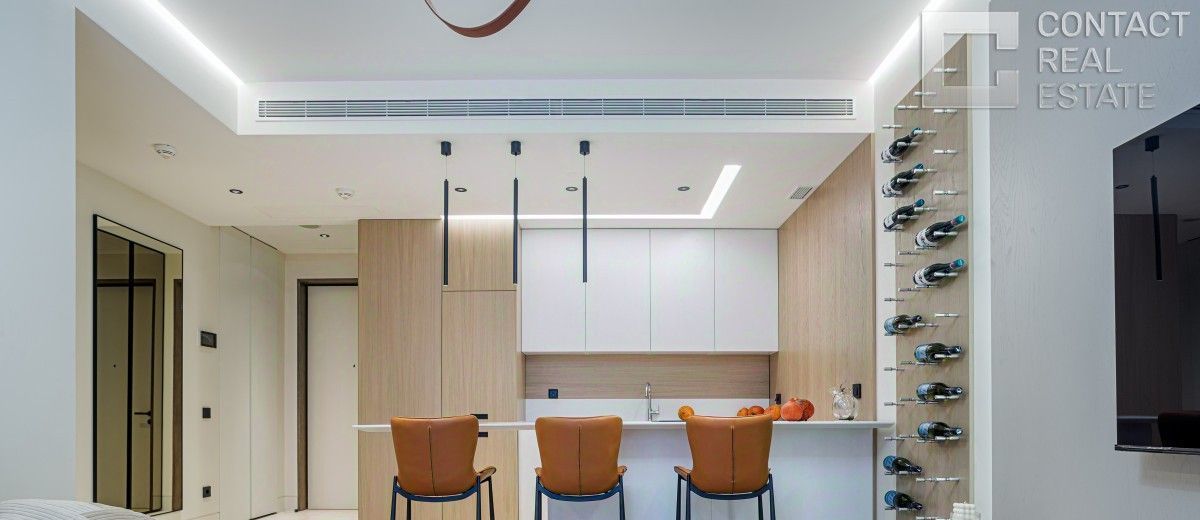 Апартаменты полностью готовы к заселению — можно заехать и жить уже сейчас! Выполнена дизайнерская отделка с использованием качественных и натуральных материалов. Установлена премиальная мебель по индивидуальному заказу и техника.