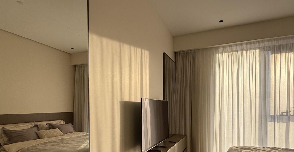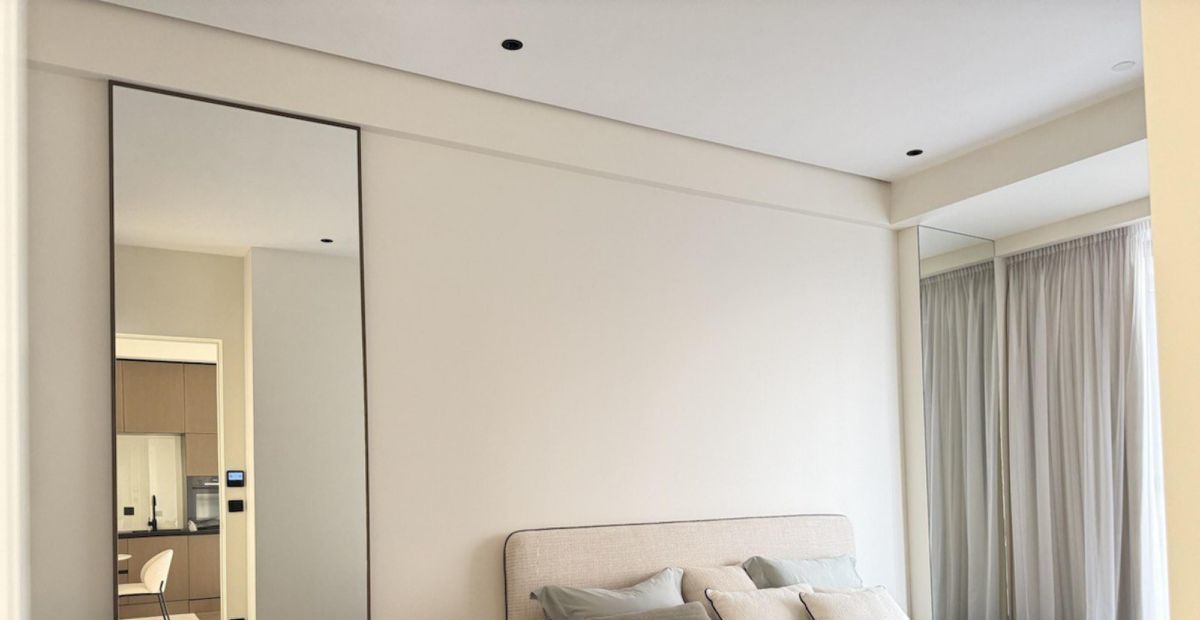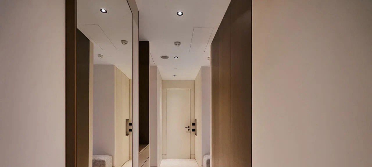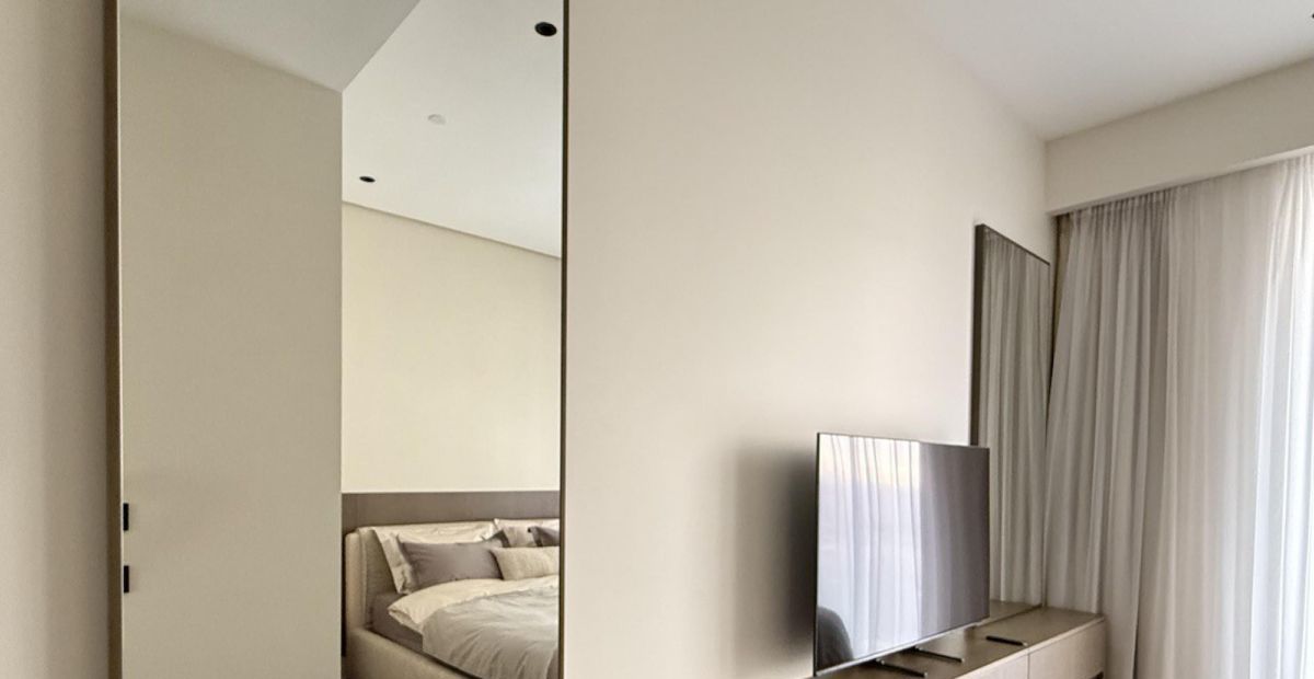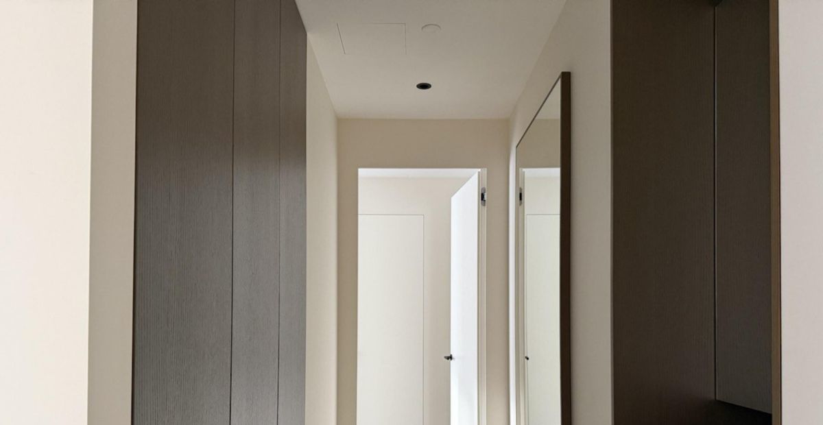 В квартире выполнена перепланировка — в мастер-спальне и прихожей зоне добавлены шкафы и оборудованы встроенные гардеробные зоны. Тем самым, квартира может подойти как для постоянного проживания, так и для временного пребывания.