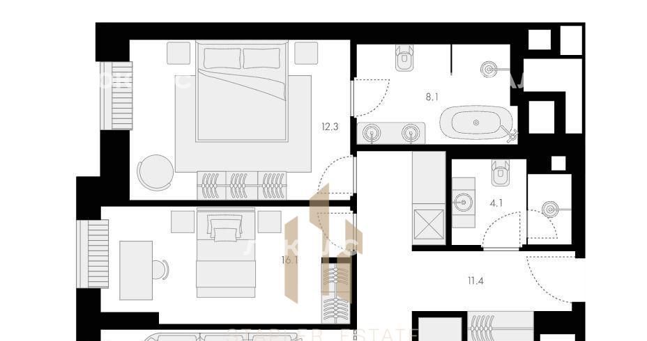 Видовые апартаменты с двумя спальнями в комплексе премиум-класса Поклонная, 9 в 10-ти минутах пешком от парка Победы. Апартаменты общей площадью 85 м расположены на 16-м этаже. Выполнена премиальная отделка от застройщика в стиле вне времени с использованием высококачественных материалов. Спланирована просторная кухня-гостиная, спальня, ванная комната, холл. Благодаря панорамному остеклению пространство наполнено естественным светом, открываются живописные виды на город и на Кутузовский проспект. Поклонная, 9 - 34-этажный жилой комплекс премиум-класса в пяти минутах от Кутузовского проспекта. На первом этаже вас ожидают 4 ресторана, бары, бутики и продовольственные магазины. На втором этаже располагаются спа-центр, 25- метровый бассейн с витражным остеклением потолка и фитнес-центр площадью 1000 м. На третьем этаже организованы конференц-зал, коворкинг зоны, переговорные и сигарные комнаты. Пятизвездочный отель Sofitel с отдельным входом занимает с третьего по шестой этаж