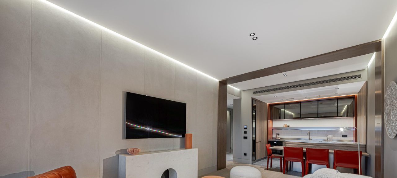 - современной итальянской мебелью (кухонный гарнитур - Arclinea Italia, диван - Tacchini, кровать - Baxter, гардеробная - B&B)