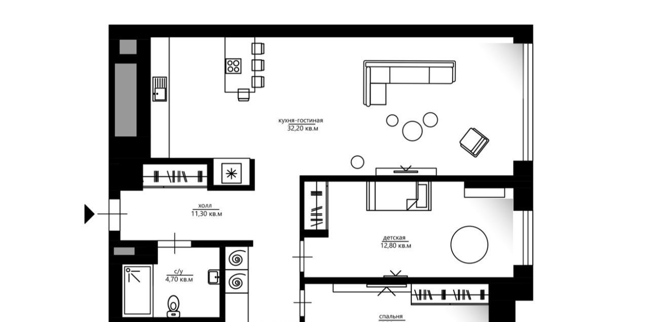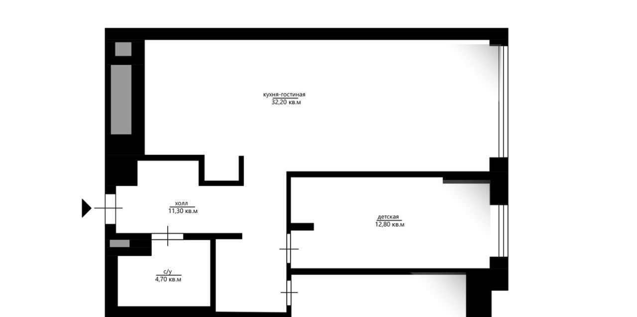 - вторая комната - свободного назначения, может быть использована как спальня, детская, офис, гардероб