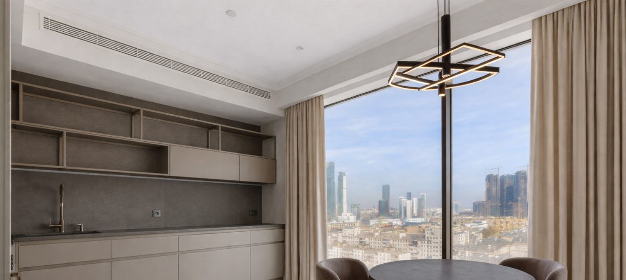Планировка: кухня-гостиная, спальня, кабинет, два санузла. Ремонт выполнен в авторском стиле. Панорамный вид из окон на город. Подземный паркинг, 1 м/м входит в стоимость.