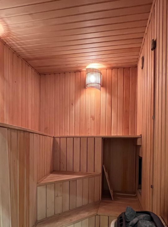 Планировка включает в себя 2 спальни, 2 санузла, функционирующую сауну, просторную кухню и гостиную.