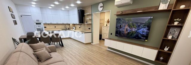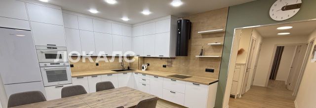 В квартире выполнен качественный евроремонт, что создаёт атмосферу уюта и комфорта. Просторная кухня площадью 27 кв. м полностью меблирована и оборудована современной техникой: холодильником, посудомоечной машиной и кондиционером. В комнатах также есть мебель, а в одной из ванных комнат установлена ванна, что позволяет расслабиться после долгого дня. Квартира оснащена всем необходимым для комфортного проживания, включая телевизор и стиральную машину.