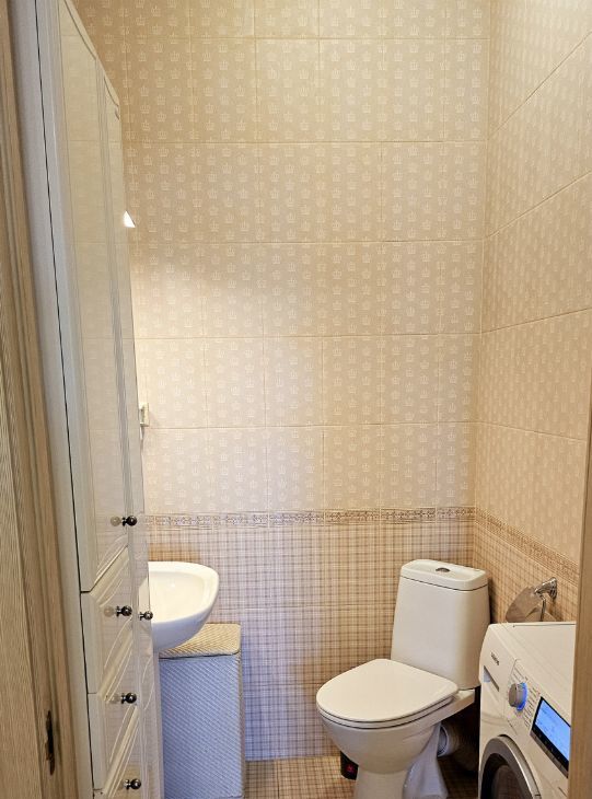 В квартире сделан качественный евроремонт. Есть вся необходимая мебель на кухне и в комнатах. Кухня оборудована современной техникой: холодильником, посудомоечной машиной и стиральной машиной,телевизор. В гостиной — телевизор. Ванная комната с ванной. Санузел раздельный, что удобно для семьи. В доме есть пассажирский и грузовой лифты, поэтому можно легко подниматься и спускаться с любым количеством багажа. Для автомобилей предусмотрена наземная парковка.