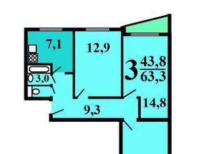 3-к кв. Москва пос. Коммунарка, ул. Бачуринская, 19 (82.9 м²)