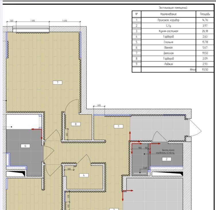 Общая площадь 93,3 м2 + 3 м2 (лоджия).