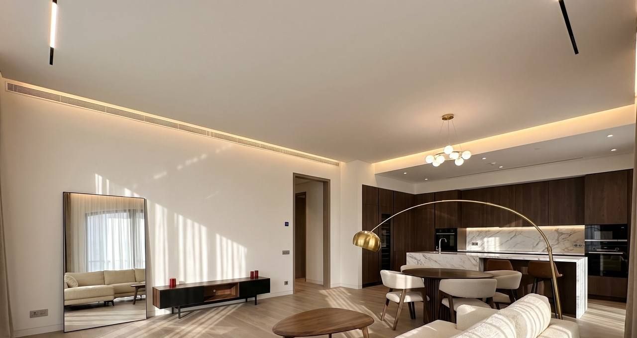В квартире есть всё необходимое для комфортной жизни: современная мебель на кухне и в комнатах, а также вся необходимая техника — посудомоечная и стиральная машина, холодильник, кондиционер и телевизор. Просторная кухня площадью 20 кв. м идеально подходит для семейных ужинов и дружеских посиделок. В квартире два санузла, один из которых оснащён душевой кабиной, а другой — ванной, поэтому можно выбрать наиболее удобный для вас вариант.