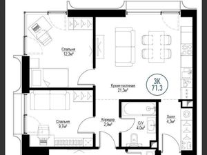 Продаётся трехкомнатная квартира в Москве, Жулебино, на Привольной улице, д. 65, корп. 3. Общая площадь квартиры составляет 80 м², в том числе без учёта лоджий 77,5 м², жилая площадь 51,6 м², кухня 11.4 м². Квартира расположена на шестом этаже семиэтажной секции панельного дома 1996 года постройки. Высота потолков составляет 2.7 метра. До станции метро "Жулебино" 6 минут пешком.