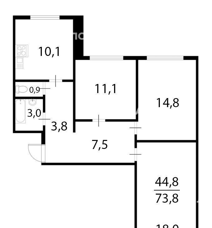 3-к кв. Москва Привольная ул., 73К1 (76.0 м²)