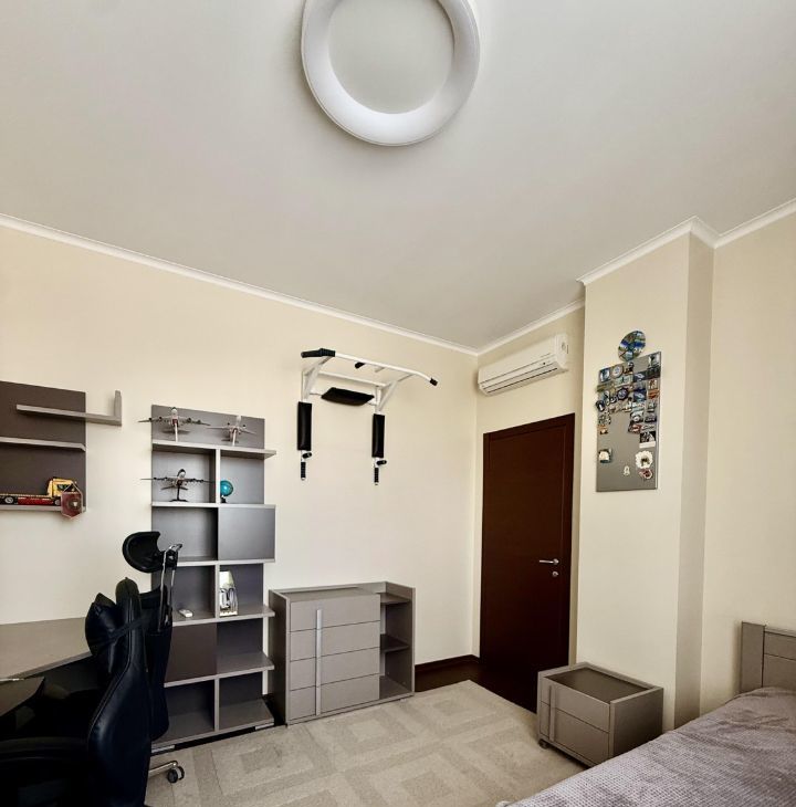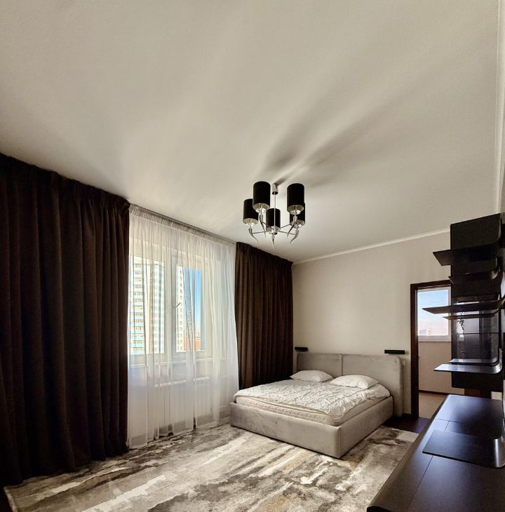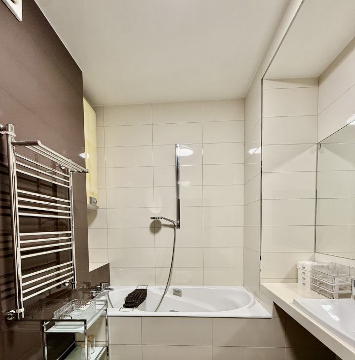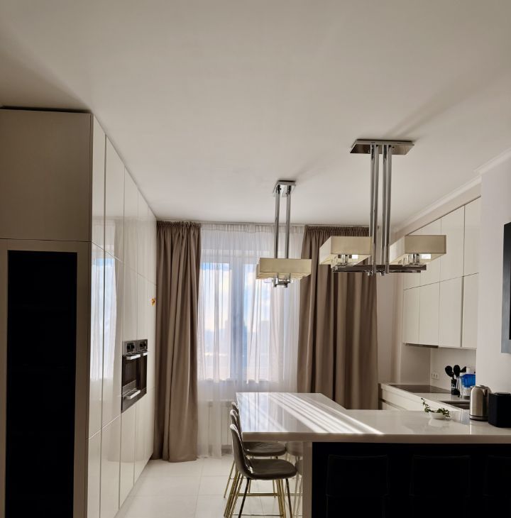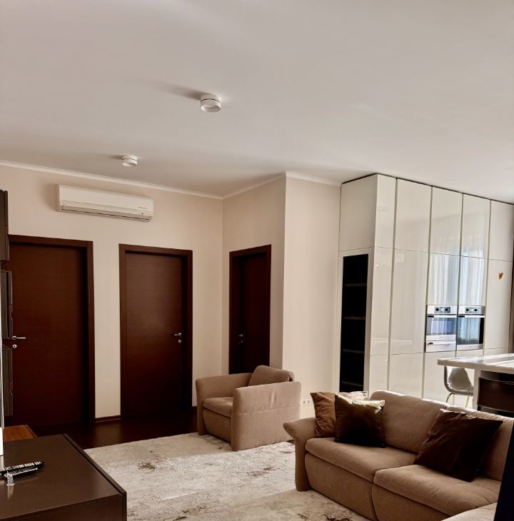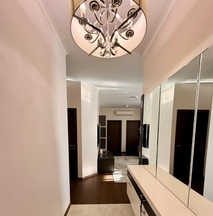 В квартире выполнен дизайнерский ремонт. Здесь есть все для комфортного проживания: современная техника, включая кондиционер, холодильник, телевизор, посудомоечную и стиральную машины, а также мебель как в комнатах, так и на кухне. Планировка включает в себя просторную кухню площадью 30 кв. м и два совмещенных санузла, один с ванной, другой с душевой кабиной. Балкон с окнами.