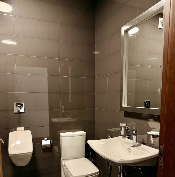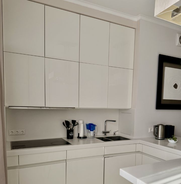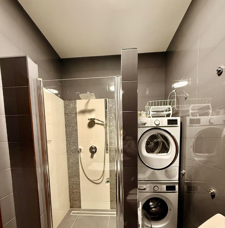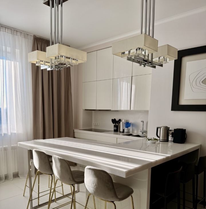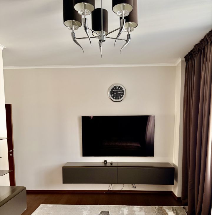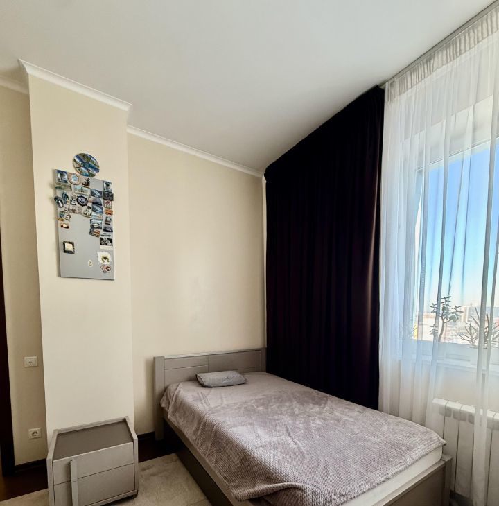 В квартире выполнен дизайнерский ремонт. Здесь есть все для комфортного проживания: современная техника, включая кондиционер, холодильник, телевизор, посудомоечную и стиральную машины, а также мебель как в комнатах, так и на кухне. Планировка включает в себя просторную кухню площадью 30 кв. м и два совмещенных санузла, один с ванной, другой с душевой кабиной. Балкон с окнами.