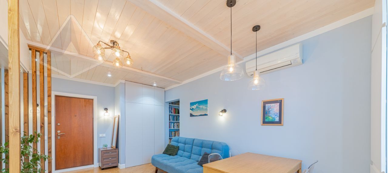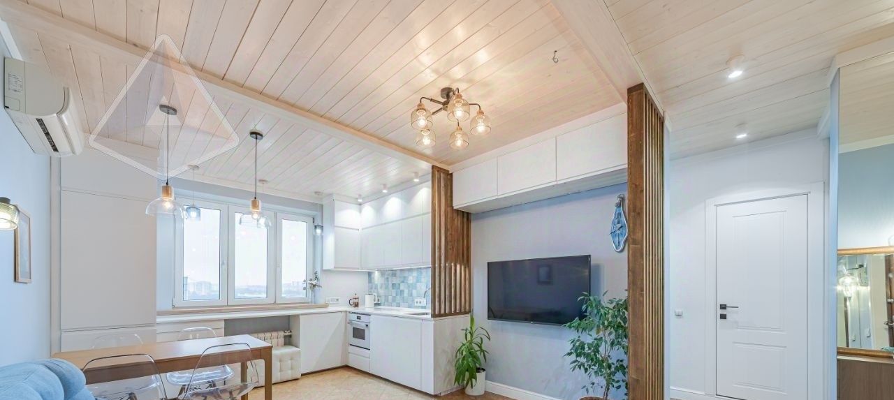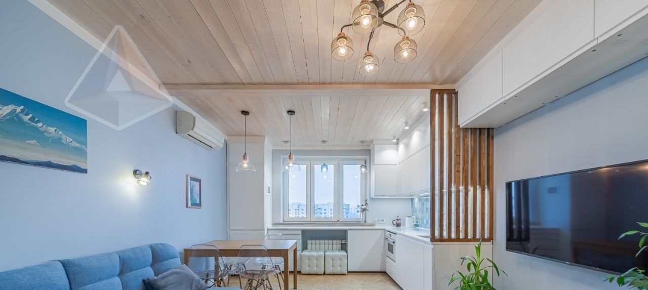 Сдается просторная и светлая евротрешка с эксклюзивным дизайнерским ремонтом. Квартира идеально подойдет для семейной пары с детьми, так как здесь функционально использован каждый квадратный сантиметр. Планировка включает большую кухню-гостиную площадью 20 квадратных метров, две изолированные комнаты, балкон и раздельный санузел, а также отдельную гардеробную комнату. Интерьер выполнен с применением дорогостоящих материалов отделки, таких как пробковый пол, каменная столешница и деревянный потолок, при этом детская комната и взрослая спальня укомплектованы мебелью, изготовленной под заказ.