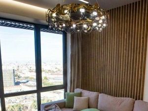 В квартире две изолированные комнаты (одна из них мастер-спальня с гардеробной и лоджией) и кухня-гостиная с большим раскладным удобным диваном, который можно также использовать в качестве спального места.