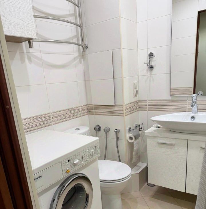 Совмещённый санузел. Установлена сантехника Jacob Delafon, Франция. Стиральная машина с сушкой Miele. Бойлер для подогрева воды при отключении горячей воды. - Остеклённая лоджия. Окна наполняют помещение светом и открывают вид на улицу и двор. Установлена сушильная машина Miele. Заселиться можно с детьми. Также вы можете привезти свою мебель.