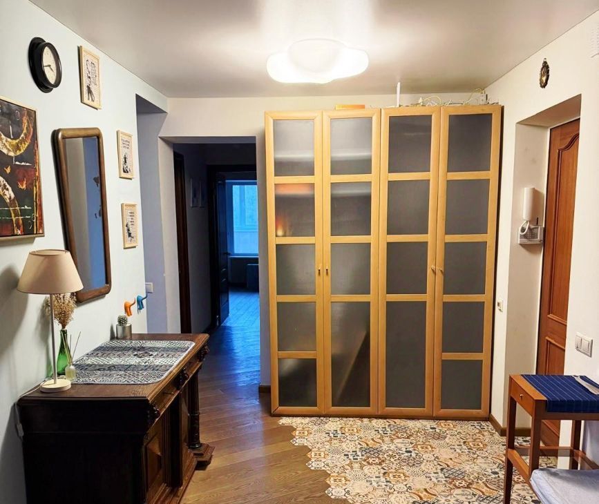 Интерьер: просторная и функциональная планировка с качественным евроремонтом создает уютную атмосферу и позволяет наслаждаться комфортом. Спальня оборудована шкафом с подсветкой Mercantini Италия. Есть спальный гарнитур, полка и зеркало Calligaris, Италия. В гостиной находится стенка Calligaris, Италия. В прихожей шкаф и банкетка Calligaris, Италия. Комод антикварный, Испания. Итальянская мозаичная плитка. В коридоре потолок с подсветкой. Двери Испания. Ещё есть раскладной диван и пианино. Кухня оборудована кухонным гарнитуром Venetta Cucine, Италия. Есть посудомоечная машина Siemens с подсветкой программ на полу, трехсекционный холодильник Mitsubishi, микроволновая печь и духовка Electrolux, индукционная плита, встроенный в мойку измельчитель отходов, фильтры для воды, осмос. Итальянская мозаичная плитка. - Установлены функциональные бытовые приборы: кофемашина, тостер.