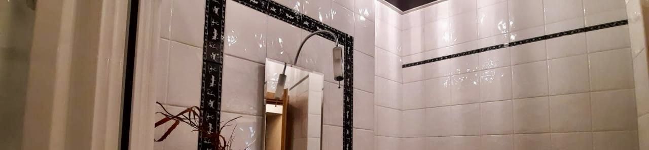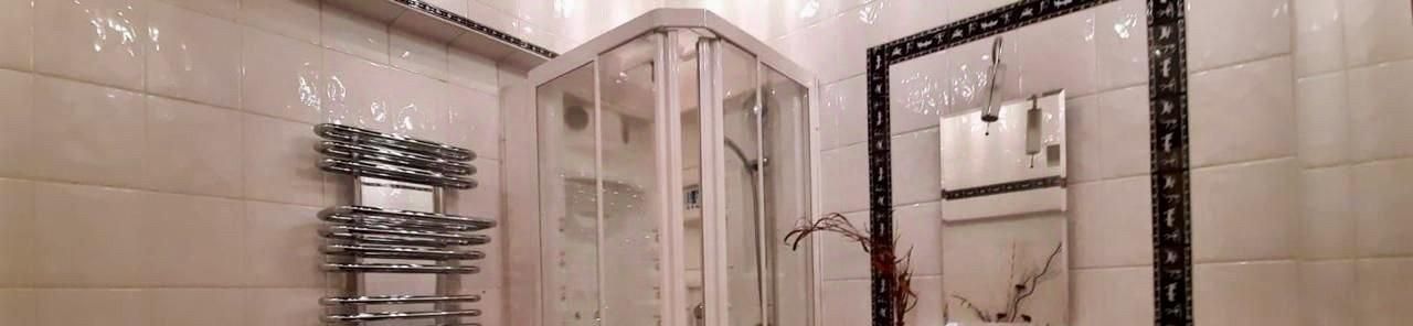 Санузел совмещенный, оформлен плиткой с оригинальным декором и оборудован душевой кабиной, джакузи, водонагревателем, стиральной машиной.