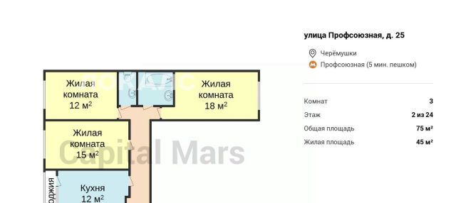 3-к кв. Москва Профсоюзная ул., 25 (75.0 м²)