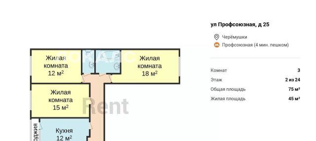 3-к кв. Москва Профсоюзная ул., 25 (75.0 м²)