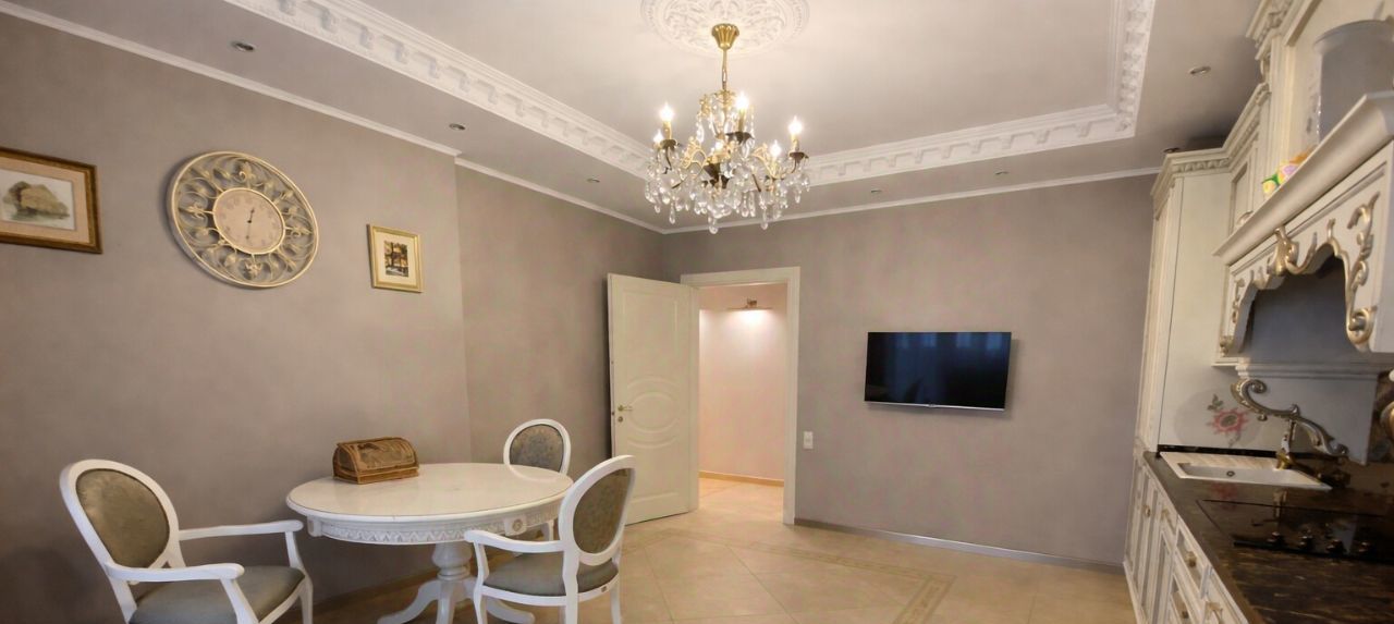 ЖК Адмирал бизнес класса. Сдается большая уютная квартира с дизайнерским ремонтом в классическом стиле, с личным парковочным местом. Большая кухня с телевизором, итальянский кухонный гарнитур из натурального дерева. Гостиная с итальянской мебелью Preno. Две уютные спальни, в каждой есть своя гардеробная. Мебель Испания и Италия. Два санузла, хозяйский и гостевой. Есть вся бытовая техника. Два балкона.