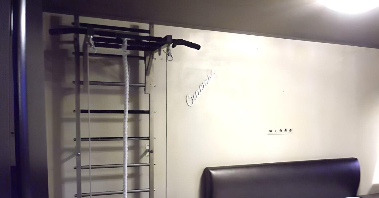 В одной из комнат СПОРТИВНОЕ оборудование.