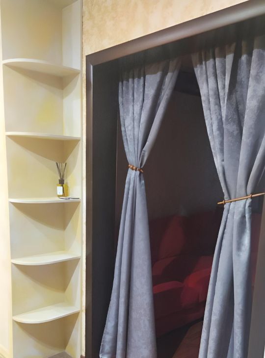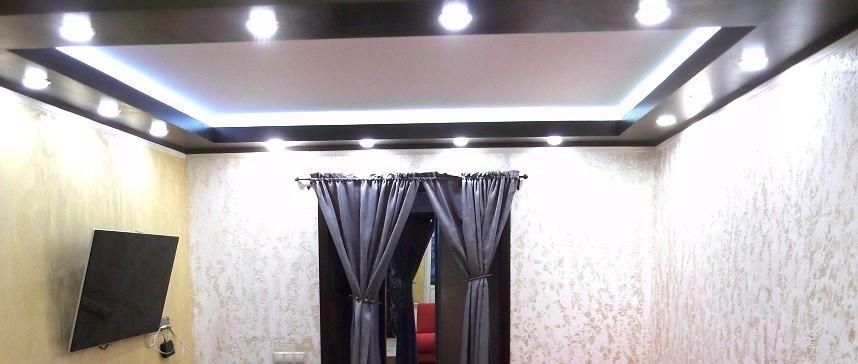 Уютный стильный декор: красивые шторы, картины, разноуровневое освещение.