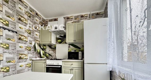 Сдаётся уютная 3-комнатная квартира в 8 минутах ходьбы от метро Беляево. Общая площадь — 60 кв. м, жилая — 43,5 кв. м, кухня — 6 кв. м. Квартира расположена на 5 этаже 9-этажного дома, построенного в 1968 году. Потолки высотой 2,65 м создают ощущение простора.